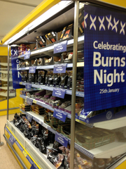 最近スコットランド名物のハギスコーナーが拡張されていたのですが,これはバーンズナイトのためです.バーンズというスコットランドの国民的な詩人が作ったハギスの詩を詠んで,みんなでハギスを食べる日です.そんなにみんながやるというものでもないようですが.バーンズはAuld Lang Syneを発掘(あるいは作詞)した詩人です.